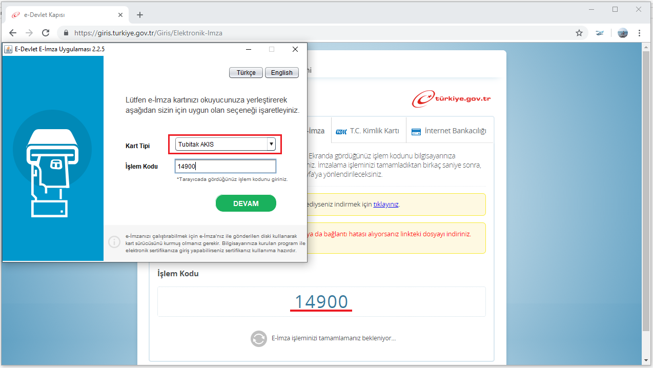 e devlet e e imza ile giris
