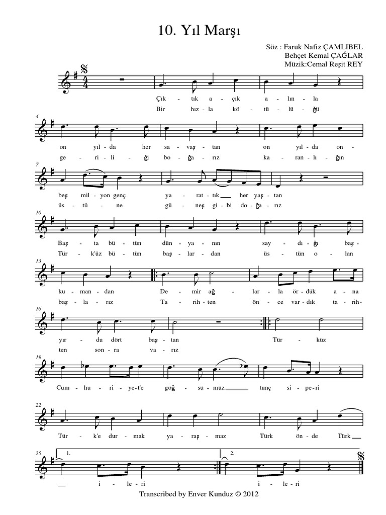 10 yil marsi notalari muzik kitabi s17 eodev com